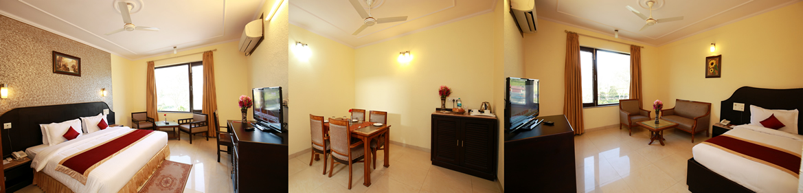 Suites Elegantly designed three room suites narrates its unmatched comfort and style. It has one double bed room, one drawing cum single bed room & a dining room. The bathroom is well designed having bath tub with all modern facilities to provide you the great level of experience.